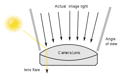 The polygonal flare patterns that are created by internal aperture reflections and refractions from a point source of light (such as the sun) that is either just inside or just outside the picture frame.